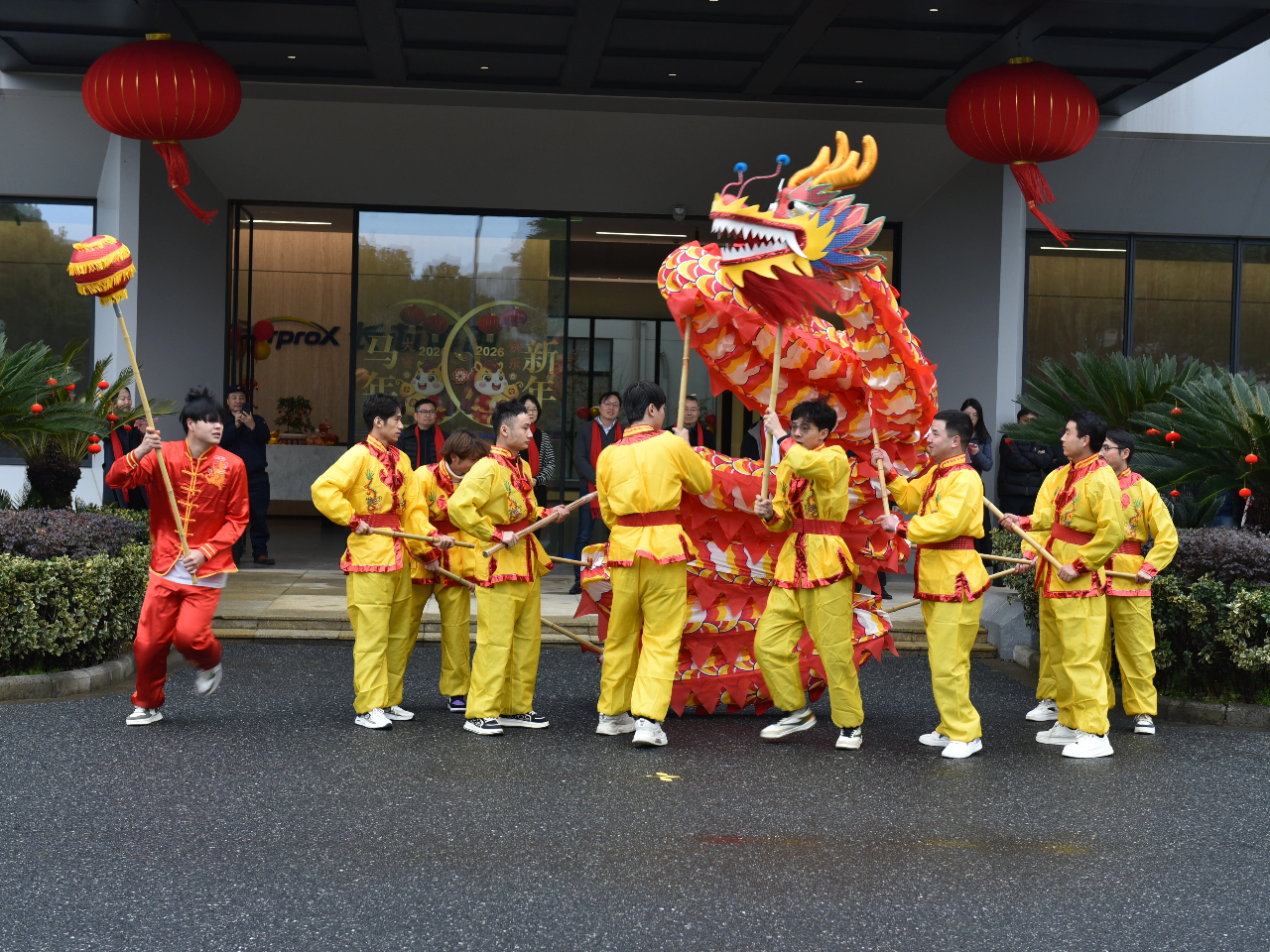 各公司总司理登台致辞,,,,,如战鼓催征,,,,,点燃全场斗志。。。。。。。。“鼓声起,,,,,祥瑞至!”随着主持人一声令下,,,,,舞龙团队踏着鼓点翻腾入场。。。。。。。。金龙追逐宝珠,,,,,时而仰面啸天,,,,,时而盘绕盘旋,,,,,引得各人纷纷举起手机纪录。。。。。。。。