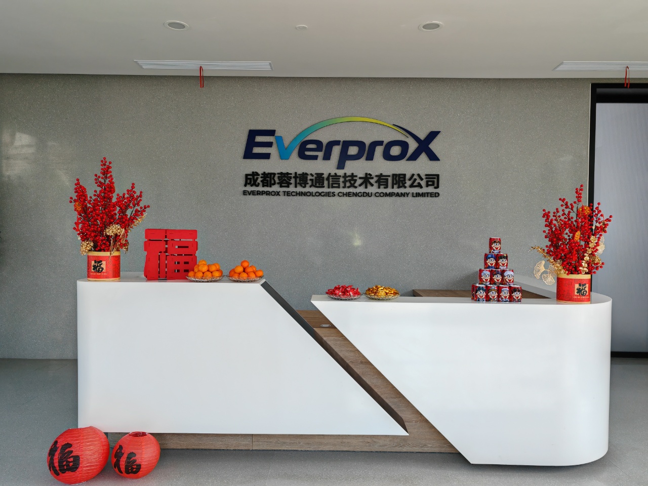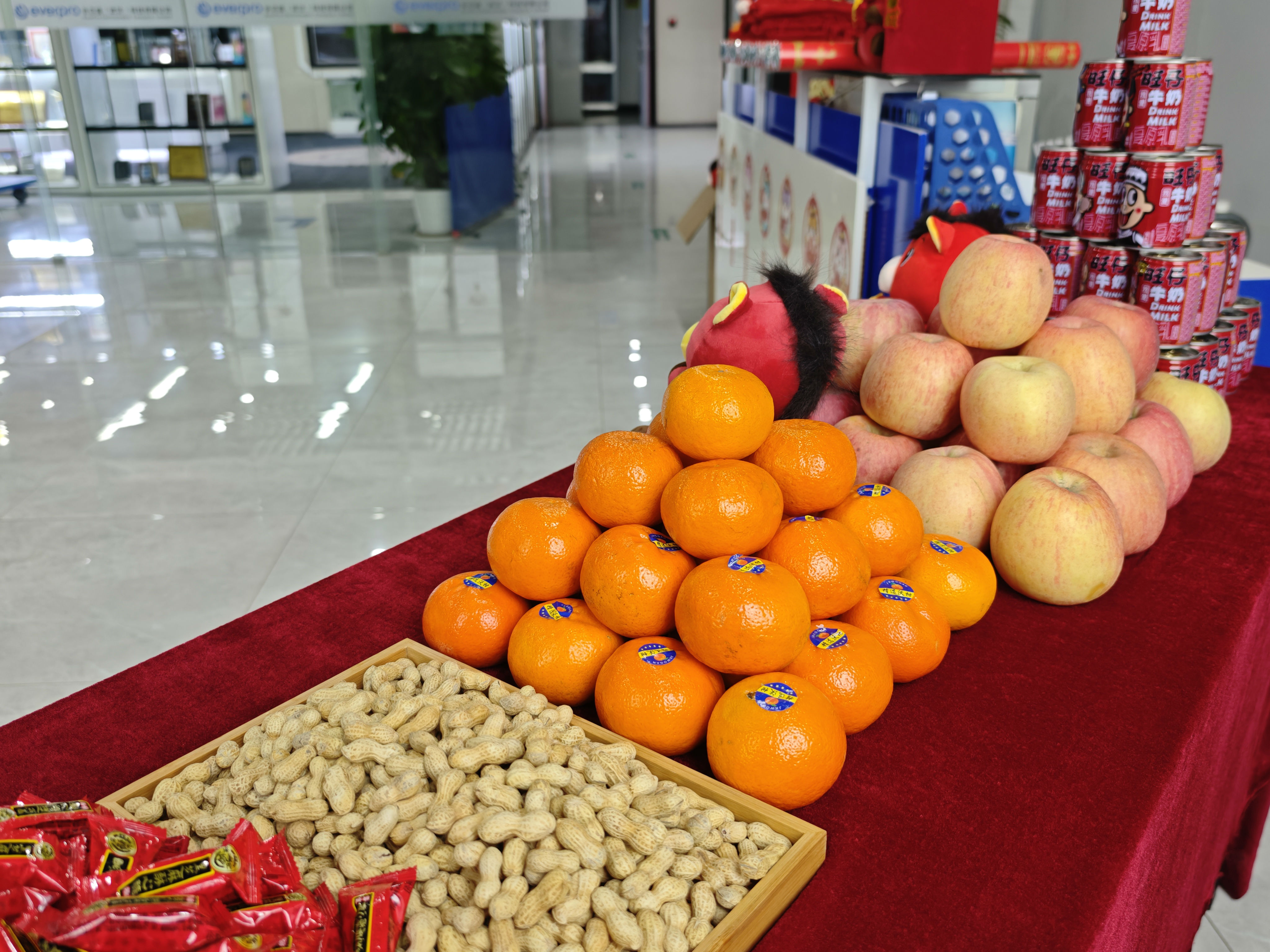 办公区与聚会室被红绸、气球装点得喜气洋洋。。。。。。。。礼炮声声,,,,,彩带飞扬。。。。。。。。 茶歇区摆满水果、糕点、糖果、礼物,,,,,同事们互道祝福,,,,,现场欢声笑语一直。。。。。。。。