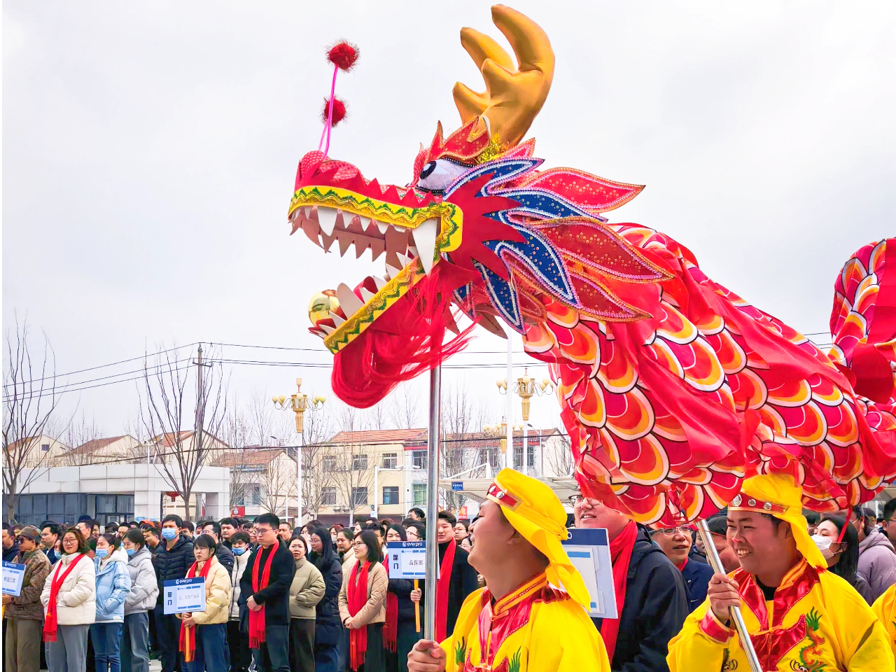 各公司总司理登台致辞,,,,,如战鼓催征,,,,,点燃全场斗志。。。。。。。。“鼓声起,,,,,祥瑞至!”随着主持人一声令下,,,,,舞龙团队踏着鼓点翻腾入场。。。。。。。。金龙追逐宝珠,,,,,时而仰面啸天,,,,,时而盘绕盘旋,,,,,引得各人纷纷举起手机纪录。。。。。。。。